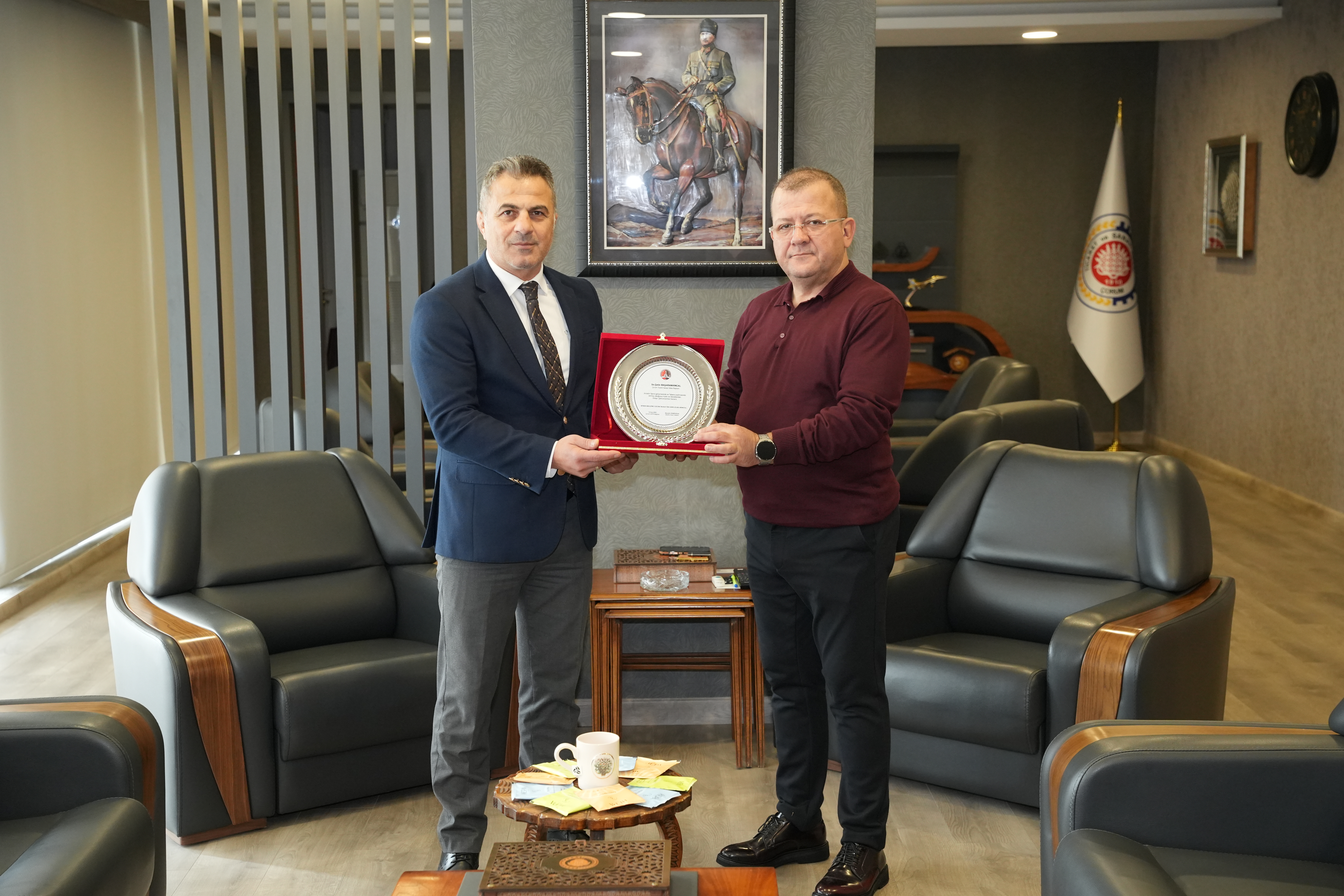 Çorum Gençlik ve Spor İl Müdürü Mustafa Demirkıran ve Çorum Spor Hizmetleri Müdürü Feyyaz Velidedeoğlu, Yönetim Kurulu Başkanımız Çetin Başaranhıncal'ı ziyaret etti. Ziyarette Çorum Gençlik ve Spor İl Müdürü Mustafa Demirkıran, Yönetim Kurulu Başkanımız Çetin Başaranhıncal'a, Odamızın Amatör sporun gelişmesinde ve tabana yayılmasında vermiş olduğu katkı ve desteklerden dolayı teşekkür plaketi takdim ederken, Çorum Spor Hizmetleri Müdürü Feyyaz Velidedeoğlu da hediye takdim etti. Misafirlerimize nazik ziyaretleri ve hediyeleri için teşekkür ederiz.