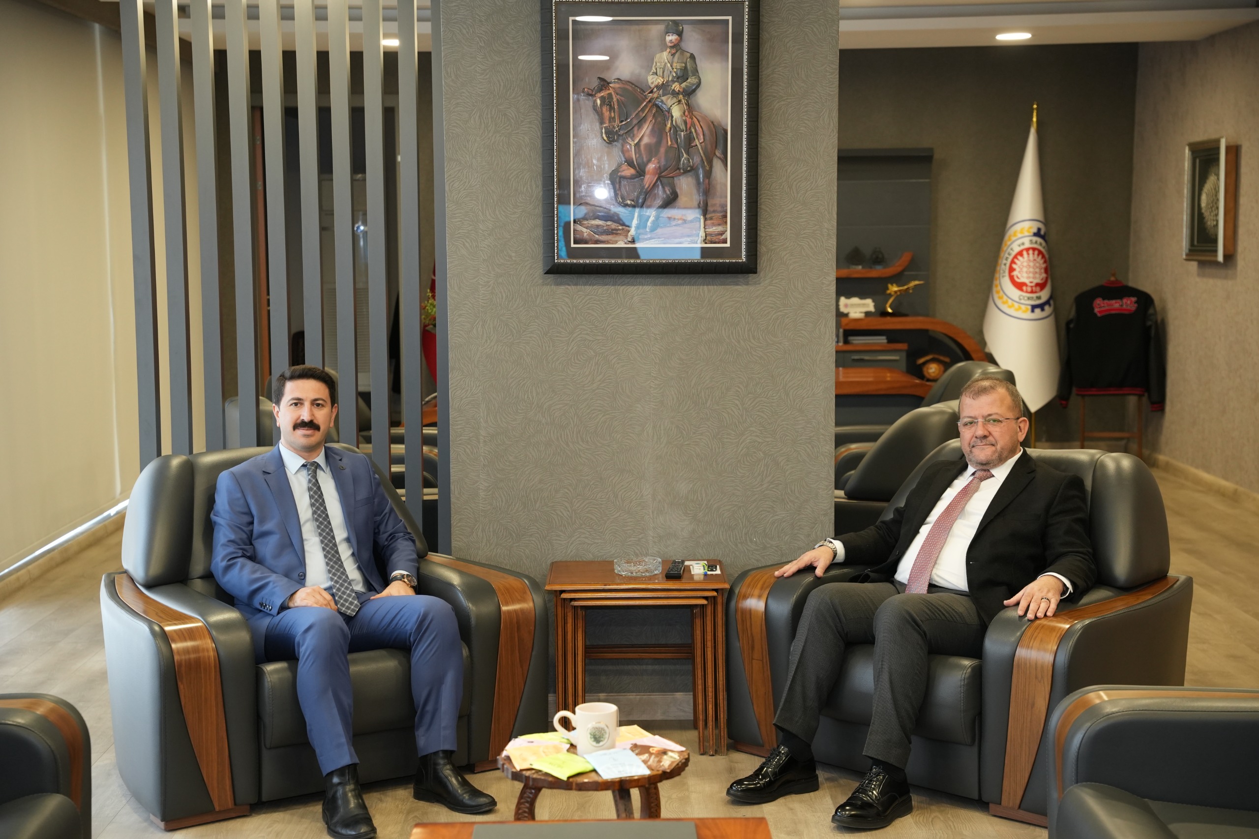 Odamıza Ziyaret - ( 24 Şubat 2026) Çorum Cumhuriyet Başsavcı Vekili Sinan Ergüden, Yönetim Kurulu Başkanımız Çetin Başaranhıncal’a iade-i ziyarette bulundu. Misafirimize nazik ziyaretinden dolayı teşekkür ederiz.