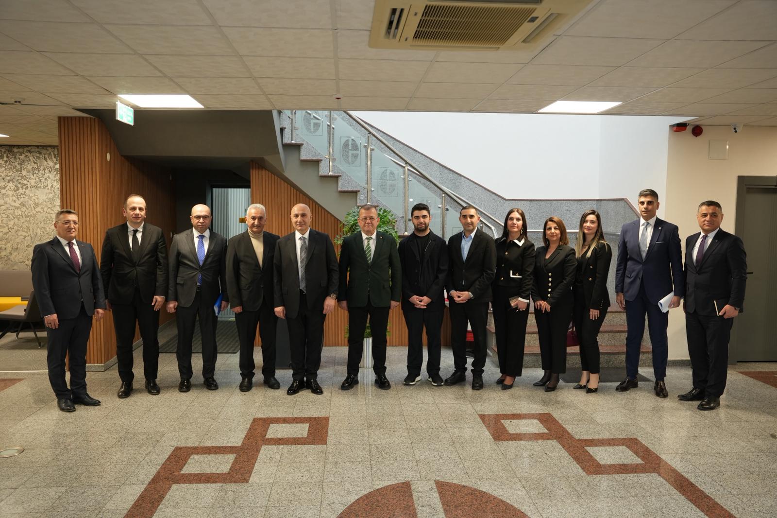 Ziyaret anısına firma sahipleri Mustafa Yağlı ile Fatih Yağlı ve Mustafa Kerem Yağlı, Halkbank Genel Müdürü Osman Arslan’a hediye takdim ettiler.