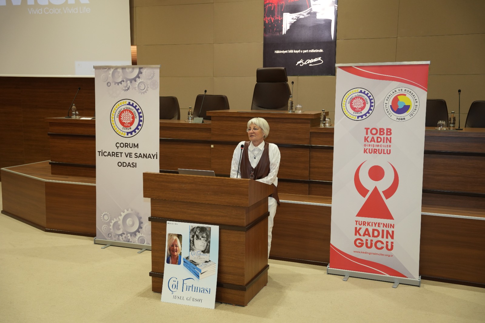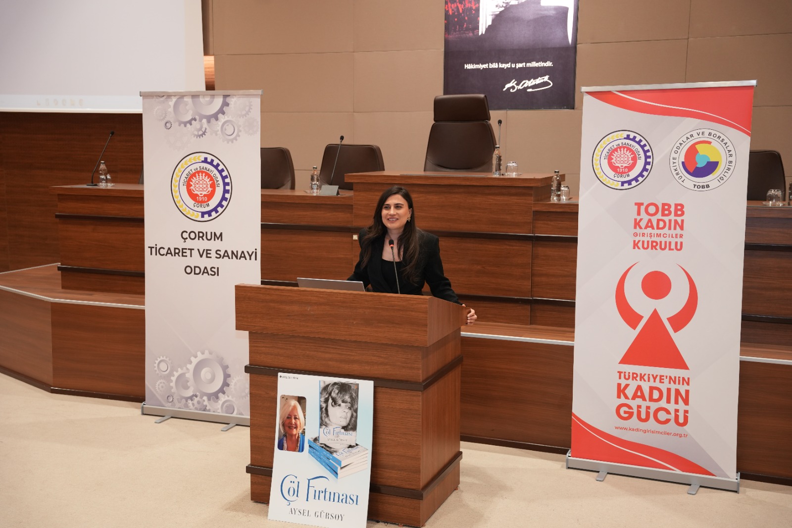 "ÇÖL FIRTINASI" SÖYLEŞİSİ - ( 15 Nisan 2026) Odamız ve TOBB Çorum Kadın Girişimciler Kurulu iş birliği ile Yazar Aysel Gürsoy’un kaleminden çıkan ve Girişimci & Hititolog Ayten Çöl’ün yaşam hikayesini konu alan “Çöl Fırtınası” adlı eser üzerine kapsamlı ve ilham verici bir söyleşi yapıldı. Programda, eserin ortaya çıkış süreci, Ayten Çöl’ün yaşam öyküsü, girişimcilik deneyimleri, iş hayatına dair önemli paylaşımlar ve girişimcilik yolculuğu farklı yönleriyle ele alındı. Söyleşinin ardından gerçekleştirilen soru-cevap bölümünde katılımcıların soruları yanıtlandı ve interaktif bir ortam sağlandı. Etkinlik sonunda yazar Aysel Gürsoy tarafından kitap imza programı gerçekleştirildi. İmza töreninin ardından söyleşi sona erdi.
