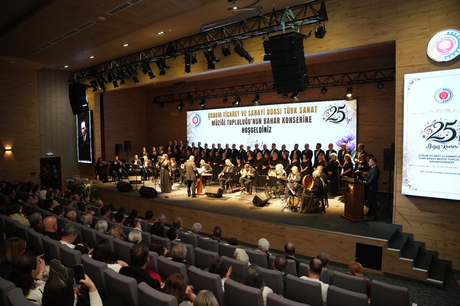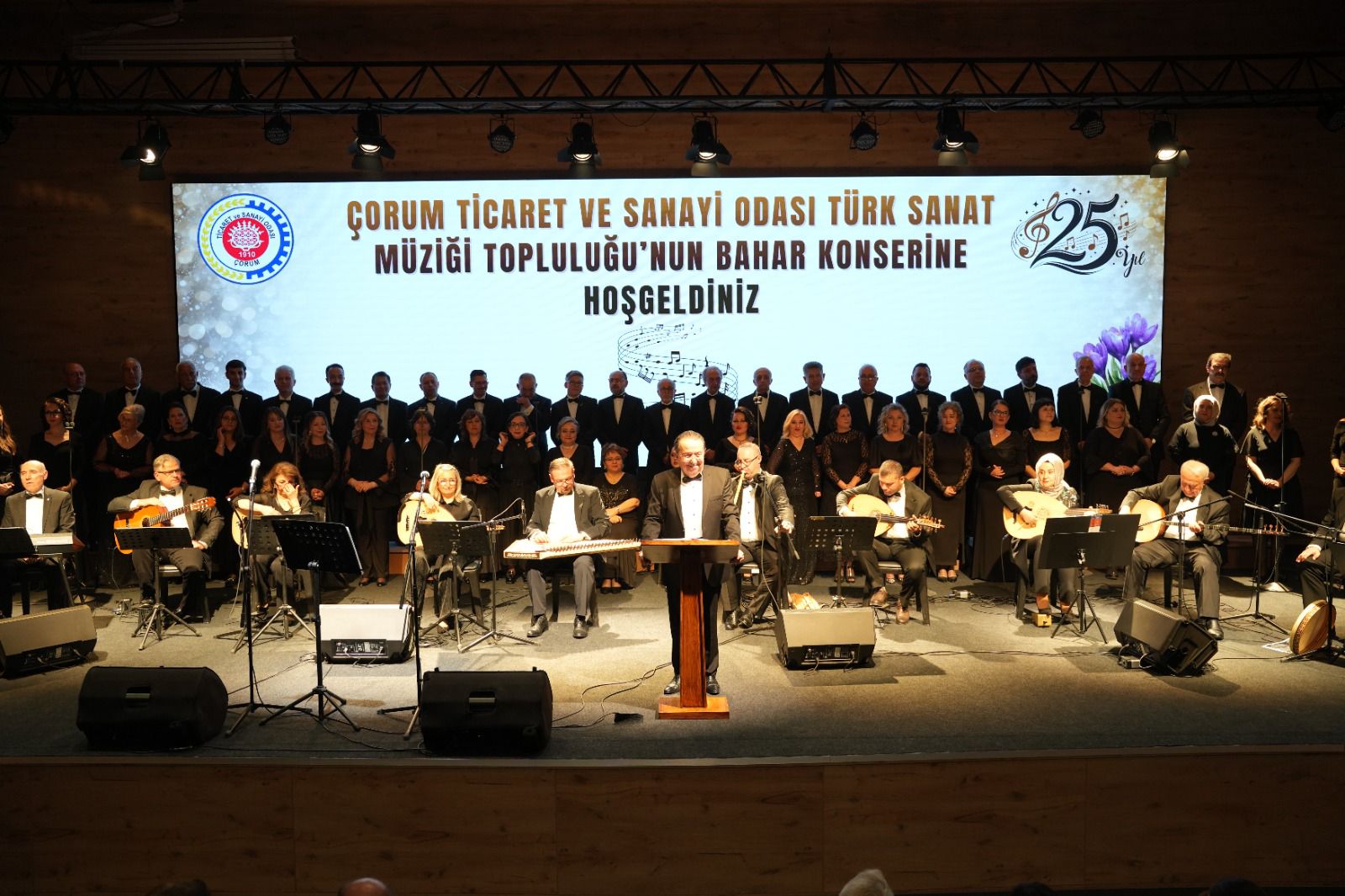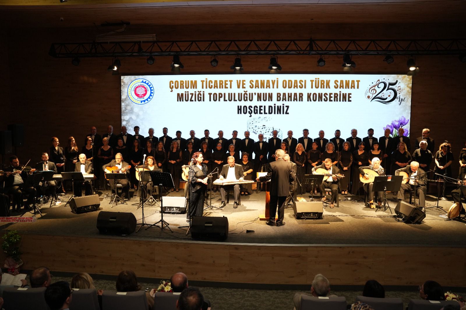 Çorum Ticaret ve Sanayi Odası’nın önemli kültürel temsil unsurlarından biri olan Türk Sanat Müziği Korosu, 25 yıllık süreçte gerçekleştirdiği sayısız konser ve etkinlikle hem kurumun sosyal sorumluluk anlayışına hem de şehrin kültürel zenginliğine katkı sağladı. Gerçekleştirilen 25. yıl konseri de bu köklü birikimin ve emeğin sahneye yansıması oldu.