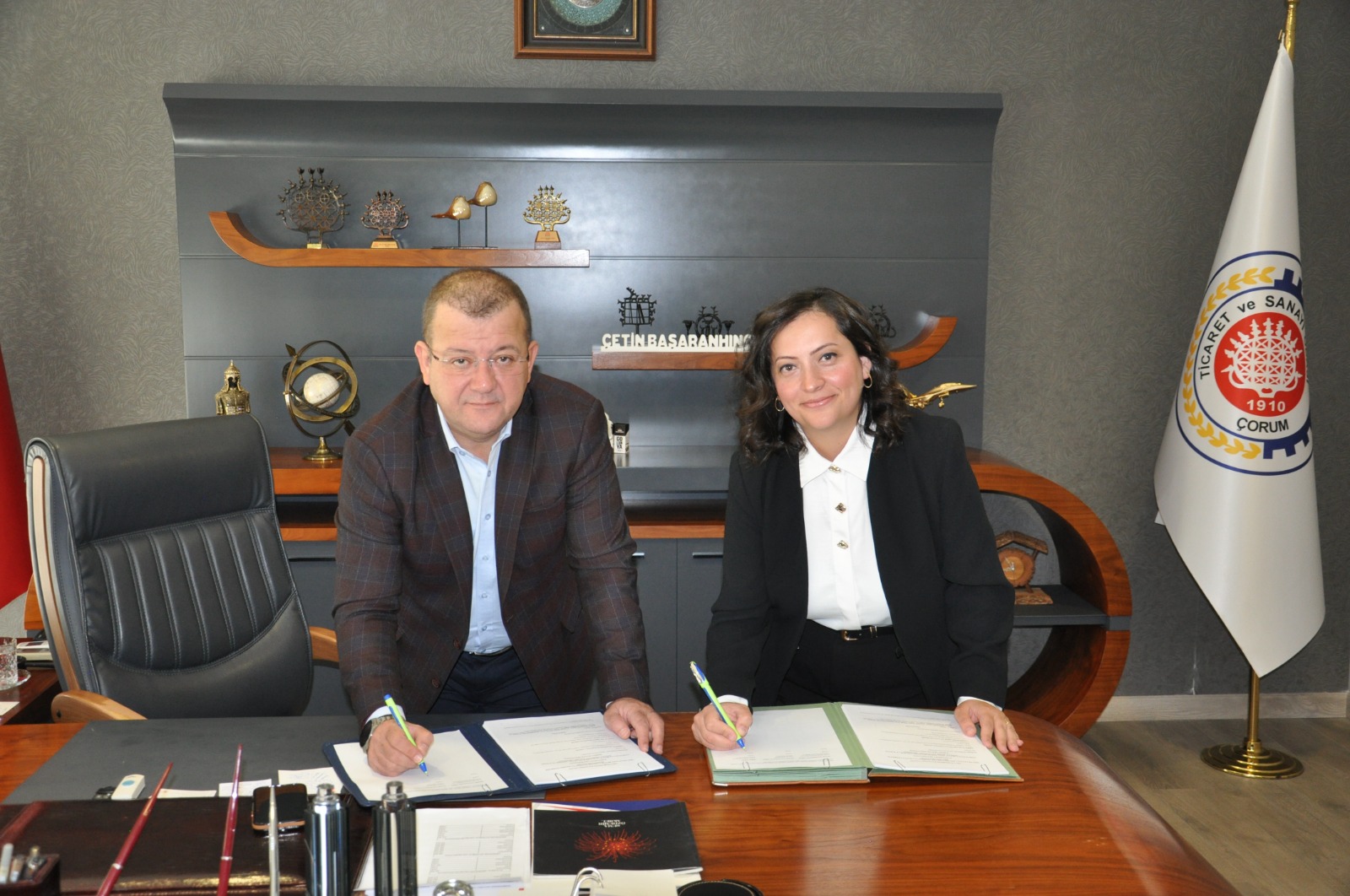 Orta Karadeniz Kalkınma Ajansı (OKA) Çorum İl Koordinatörü Tuğba Purtul Kılıç, Yönetim Kurulu Başkanımız Çetin Başaranhıncal’ı ziyaret etti. Gerçekleşen ziyarette OKA’ya katma değerli üretim ve ihracat odaklı fizibilite desteği kapsamında sunulan, Çorum raylı sistemler araç ekipmanlarının üretimi ve bakımı konulu fizibilite raporu projesine ilişkin sözleşme imzalandı.
