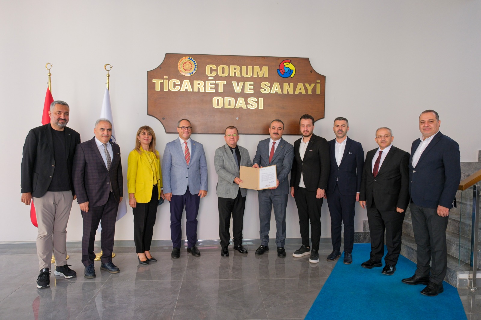 Odamıza Ziyaret - ( 26 Eylül 2025) Hitit Üniversitesi Rektörü Prof. Dr. Ali Osman Öztürk ve Rektör Yardımcıları Prof. Dr. Nurcan Baykam, Prof. Dr. Halil İbrahim Şimşek, Prof. Dr. Eşref Savaş Başçı, Yönetim Kurulu Başkanımız Çetin Başaranhıncal’ı ve Yönetim Kurulu Üyelerimizi ziyaret ettiler. Gerçekleşen ziyarette Hitit Üniversitesi Rektörü Prof. Dr. Ali Osman Öztürk, Yönetim Kurulu Başkanımız Çetin Başaranhıncal’a ve Yönetim Kurulu Üyelerimize, Odamızın Hitit Üniversitesi’ne sağlamış olduğu katkı ve destekler ile güçlü iş birliklerinden dolayı teşekkür plaketi ve teşekkür belgesi takdiminde bulundu.