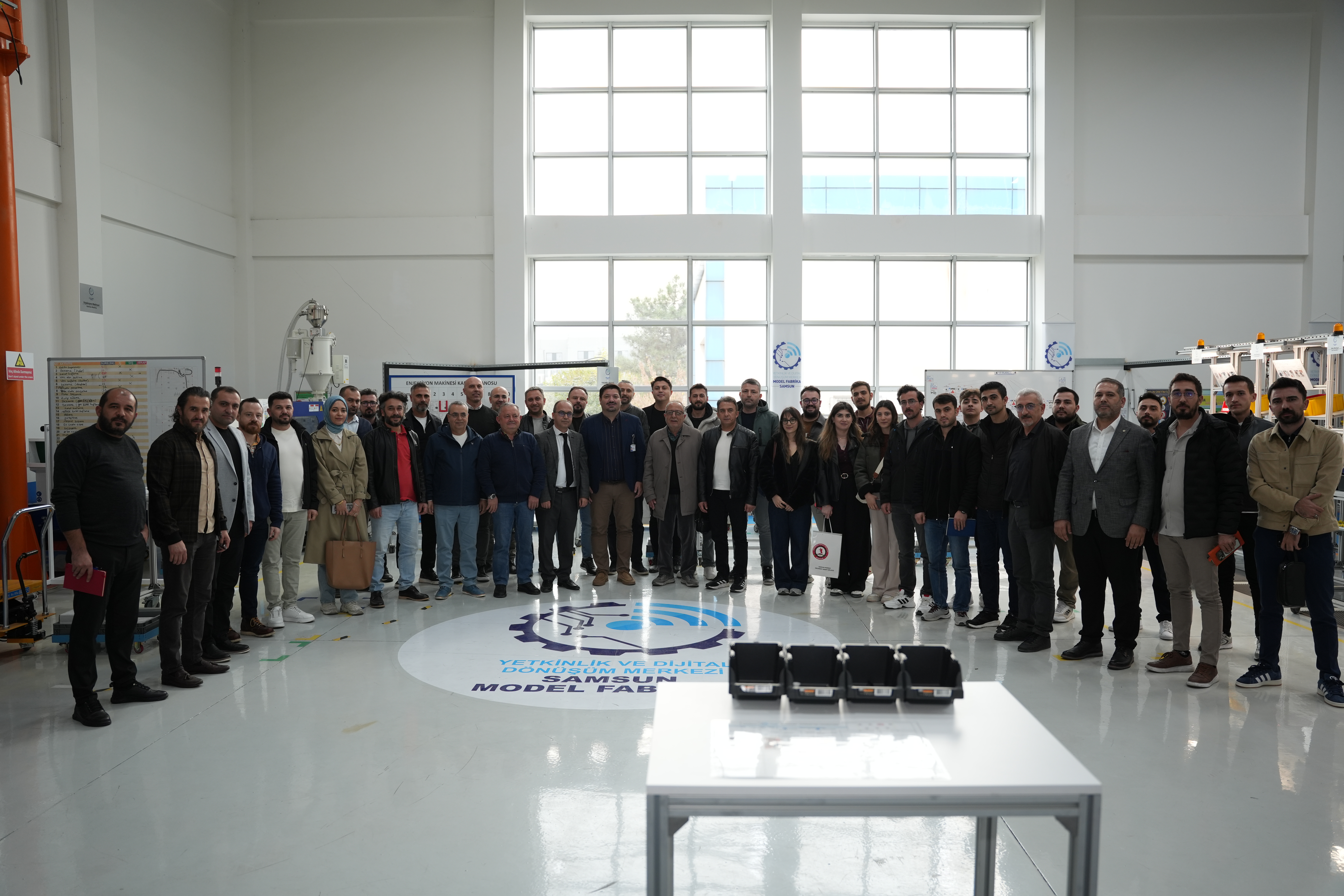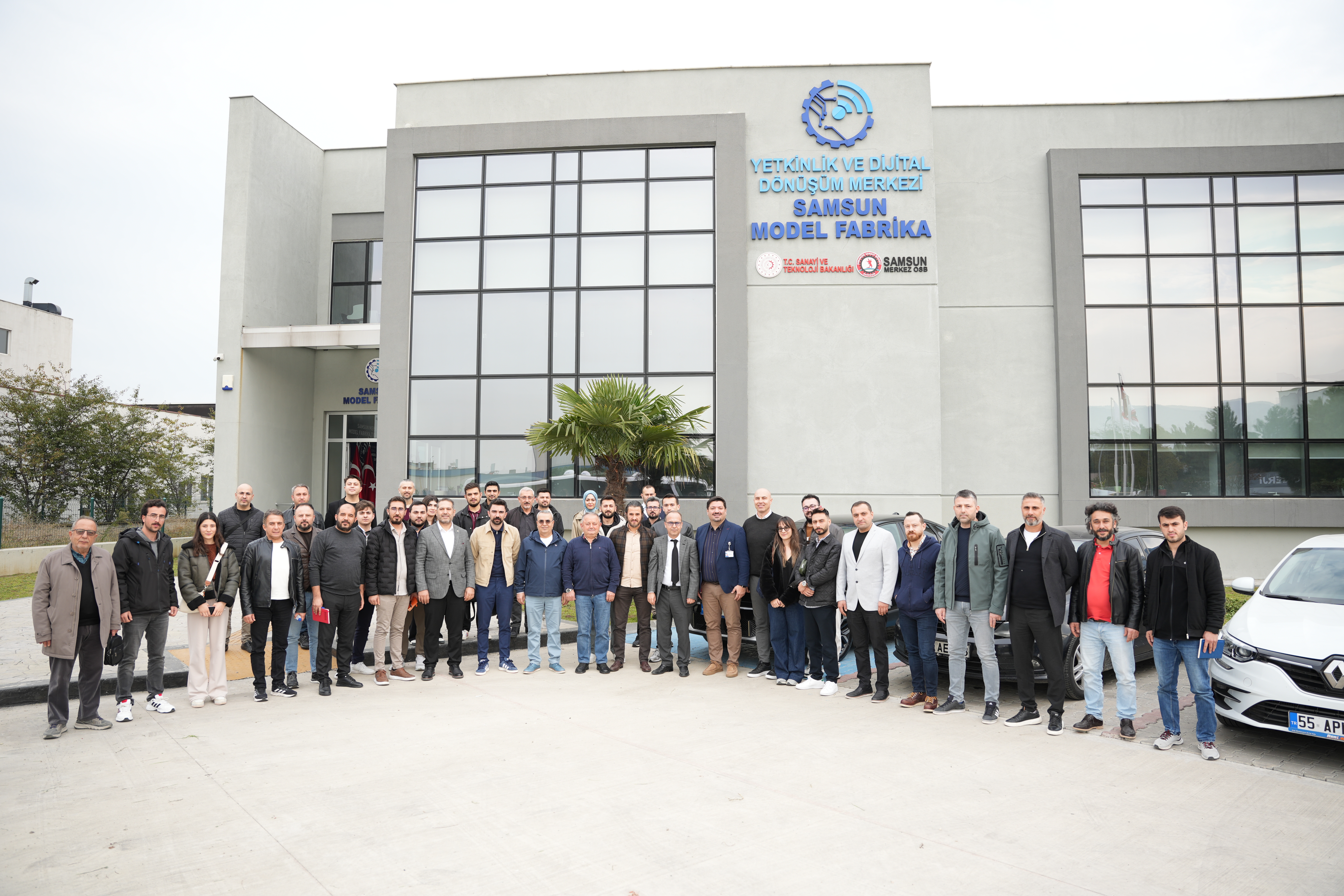 Odamız ve KOSGEB iş birliğiyle, Samsun Organize Sanayi Bölgesi’nde faaliyet gösteren Model Fabrika’ya yapılan teknik gezi - ( 11 Kasım 2025) Odamız ve KOSGEB iş birliğiyle, Samsun Organize Sanayi Bölgesi’nde faaliyet gösteren Model Fabrika’ya bir teknik gezi düzenlendi. Yalın üretim, dijital dönüşüm ve yeşil dönüşüm alanlarında hizmet veren, verimliliği artırmak ve israfı önlemek amacıyla kurulan Model Fabrika’ya gerçekleştirilen ziyarete, Çorum’dan 25 firmadan 40 kişi katılım sağladı. Katılımcılara, Model Fabrika Direktörü Onur Berberoğlu tarafından fabrikanın çalışma sistemi, amaçları ve faaliyetleri hakkında bir sunum yapılarak detaylı bilgiler aktarıldı. Teknik gezi, katılımcıların sorularının yanıtlanması ve bilgi alışverişinin ardından sona erdi.