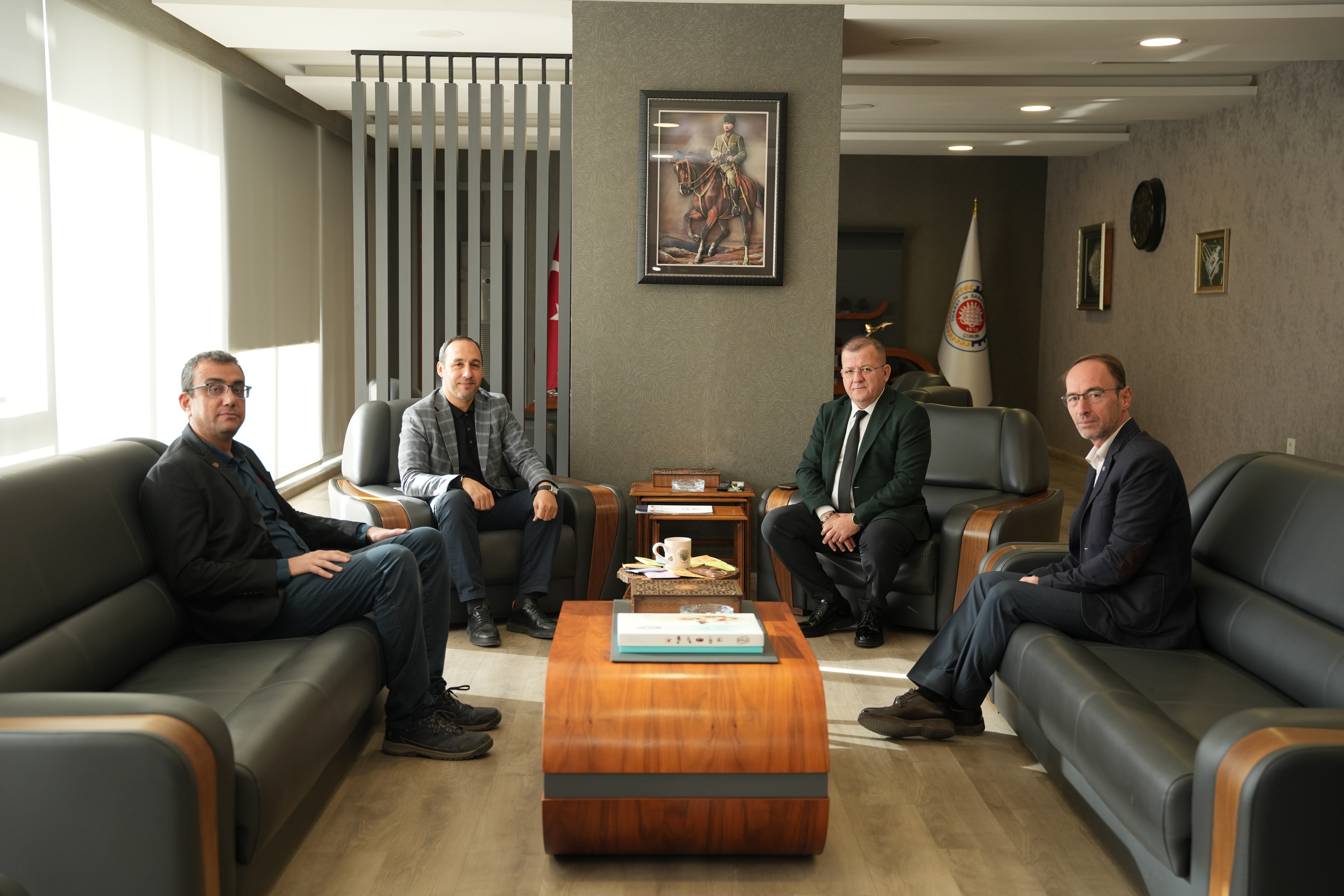 Hitit Üniversitesi Teknik Bilimler Meslek Yüksekokulu Müdürü Prof. Dr. Faruk Maraşlıoğlu, Osmancık Ömer Derindere Meslek Yüksekokulu Müdürü Dr. Öğr. Üyesi Mehmet Nurullah Alkan ve Teknik Bilimler Meslek Yüksekokulu Mimarlık ve Şehir Planlama Bölümü Harita ve Kadastro Programı Bölüm Başkanı Dr. Öğr. Üyesi İbrahim Murat Ozulu, Yönetim Kurulu Başkanımız Çetin Başaranhıncal’ı ziyaret ettiler. Misafirlerimize nazik ziyaretlerinden dolayı teşekkür ederiz.