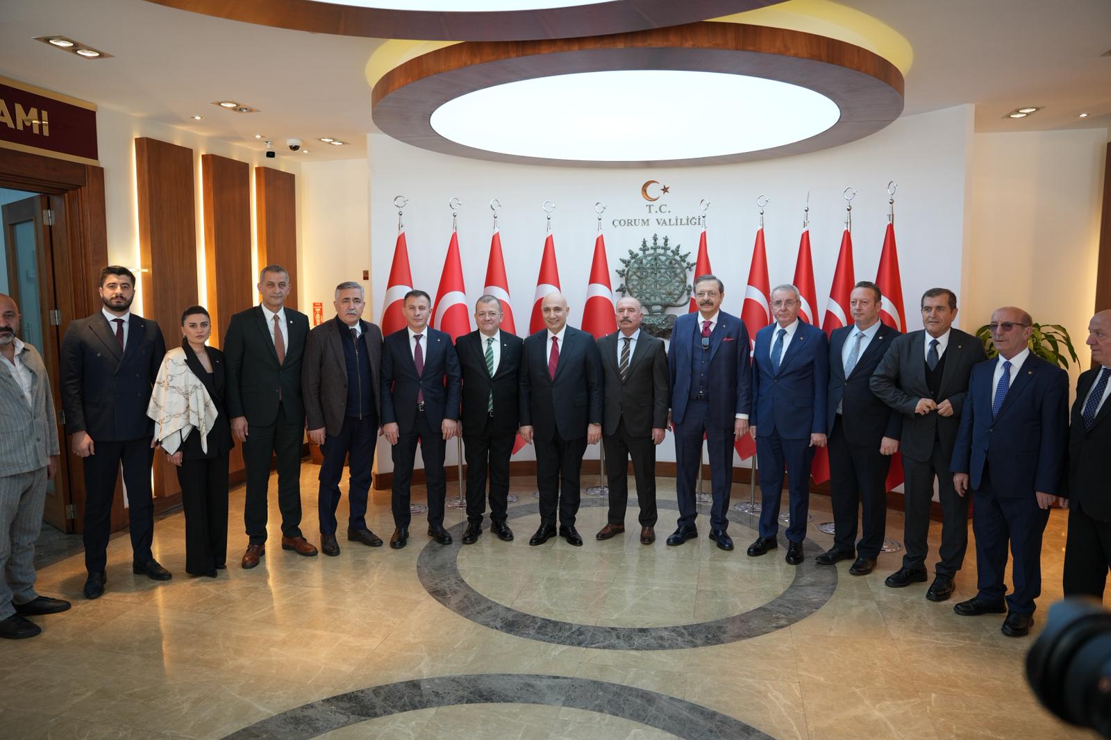 Çorum Valisi Sayın Ali Çalgan’ı ziyaret - ( 28 Ocak 2026) Yönetim Kurulu Başkanımız Çetin Başaranhıncal, Türkiye Odalar ve Borsalar Birliği Başkanımız Sayın M. Rifat Hisarcıklıoğlu ve Halkbankası Genel Müdürü Sayın Osman Arslan ile birlikte Çorum Valisi Sayın Ali Çalgan’ı ziyaret etti. Gerçekleşen ziyarette, TOBB Çorum Kadın Girişimciler İcra Kurulu Başkanı Zeynep Çenesiz Yarımca ile TOBB Çorum Genç Girişimciler İcra Kurulu Başkanı Fatih Mehmet Altan da hazır bulundu.