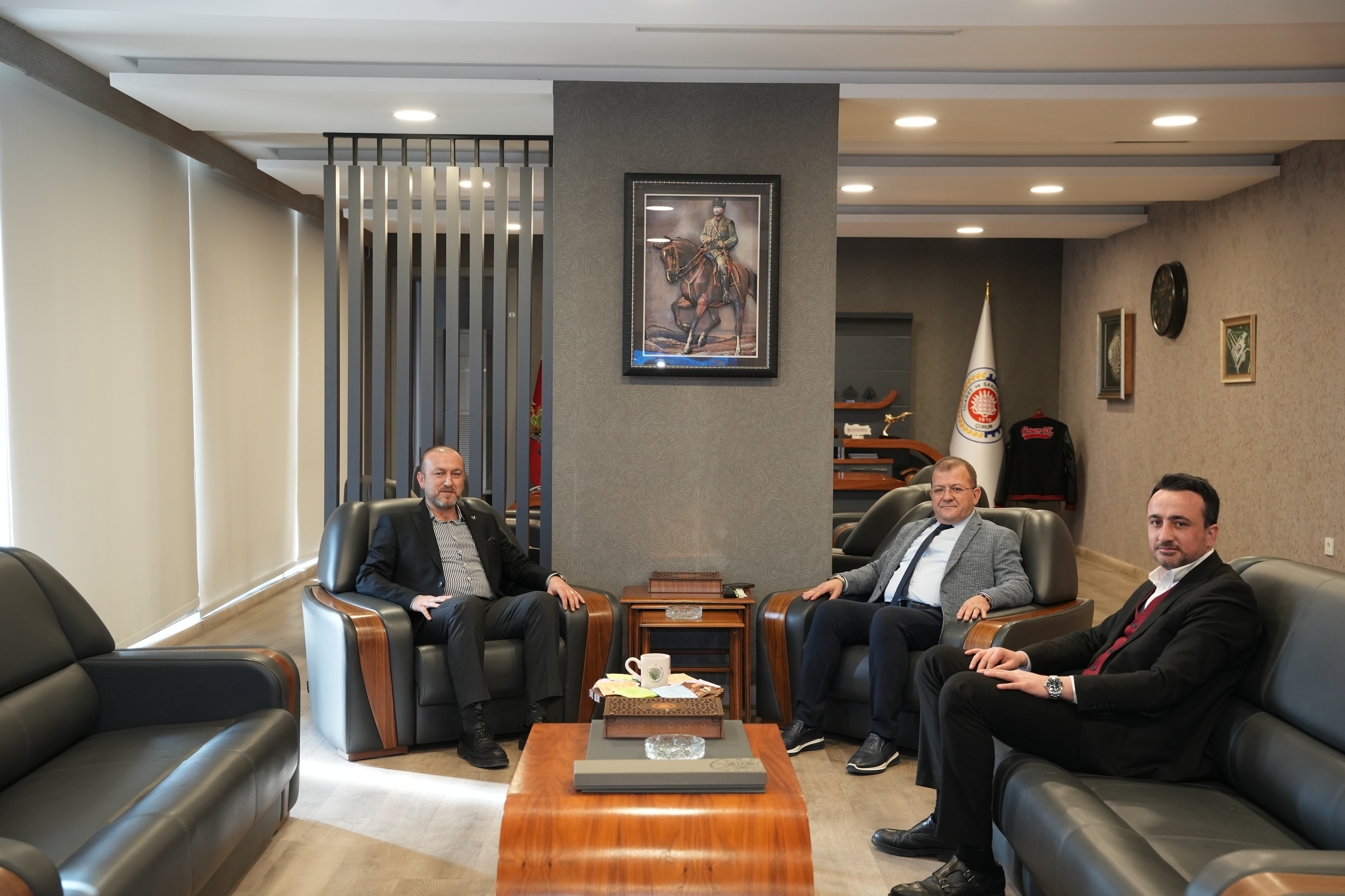 Odamıza Ziyaret - ( 10 Şubat 2026) Yeniden Refah Partisi Çorum İl Başkanı Nuri Kuşcu ile Merkez İlçe Başkanı Ferhat Yeğen, Yönetim Kurulu Başkanımız Çetin Başaranhıncal’ı ziyaret ettiler. Misafirlerimize nazik ziyaretlerinden dolayı teşekkür ederiz.