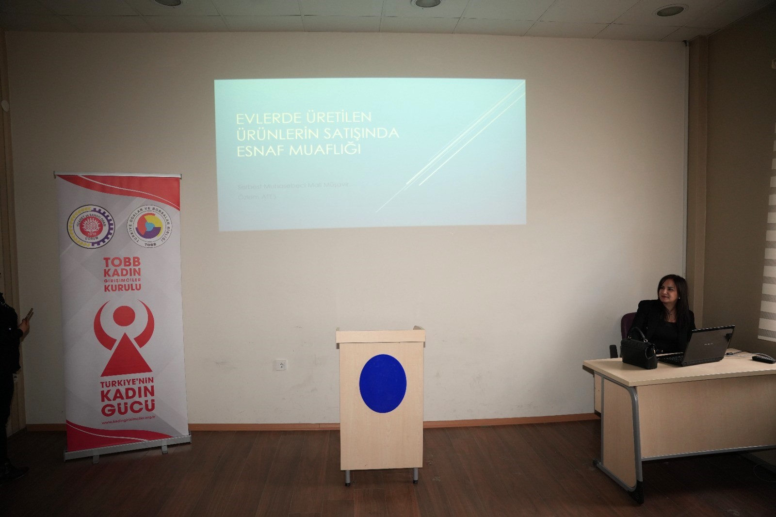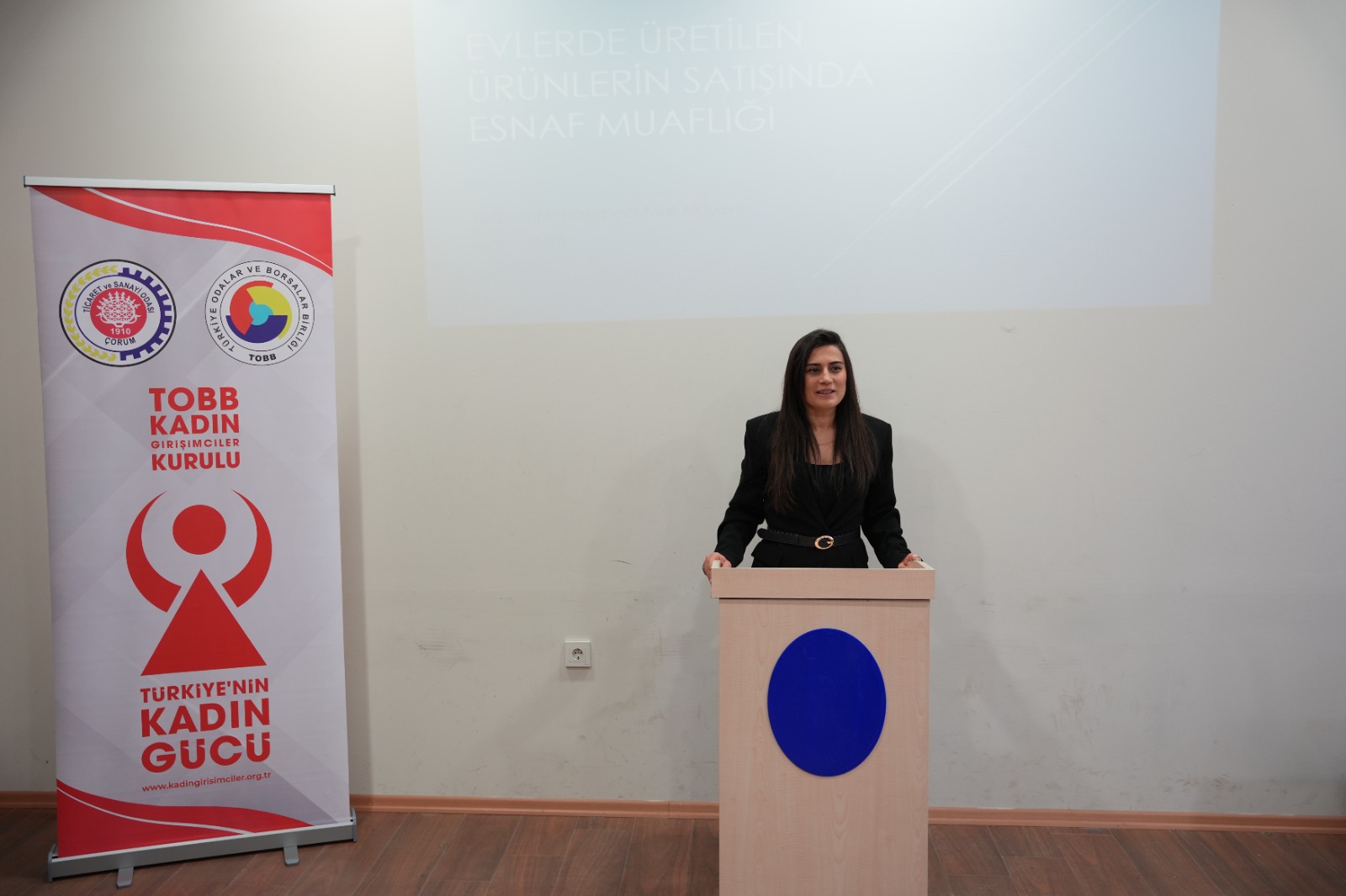 “Esnaf Muafiyet Belgesi” konulu eğitim programı - ( 23 Şubat 2026) TOBB Çorum Kadın Girişimciler Kurulu ile Genel Kurul Üyesi SMMM Özlem Ateş’in katkılarıyla Çorum Belediyesi Bahçelievler Kadın Kültür Merkezi’nde düzenlenen, “Esnaf Muafiyet Belgesi” konulu eğitim programı gerçekleştirildi. Gerçekleştirilen eğitim programında esnaf muafiyet belgesi konusu kapsamlı şekilde ele alındı. Katılımcılara, bu belgenin ne olduğu ve kimleri kapsadığı ayrıntılı olarak anlatılırken; başvuru sürecinin nasıl işlediği adım adım açıklandı. Eğitimde ayrıca esnaf muafiyet belgesinin sağladığı avantajlar üzerinde durularak, vergi muafiyeti kapsamı, yasal kolaylıklar ve girişimcilere sunduğu fırsatlar örneklerle aktarıldı. Belgenin hangi faaliyet alanlarında kullanılabileceği, kimlerin bu haktan yararlanabileceği ve dikkat edilmesi gereken hususlar detaylı biçimde paylaşıldı. Yapılan soru cevap kısmının ardından eğitim programı sona erdi.