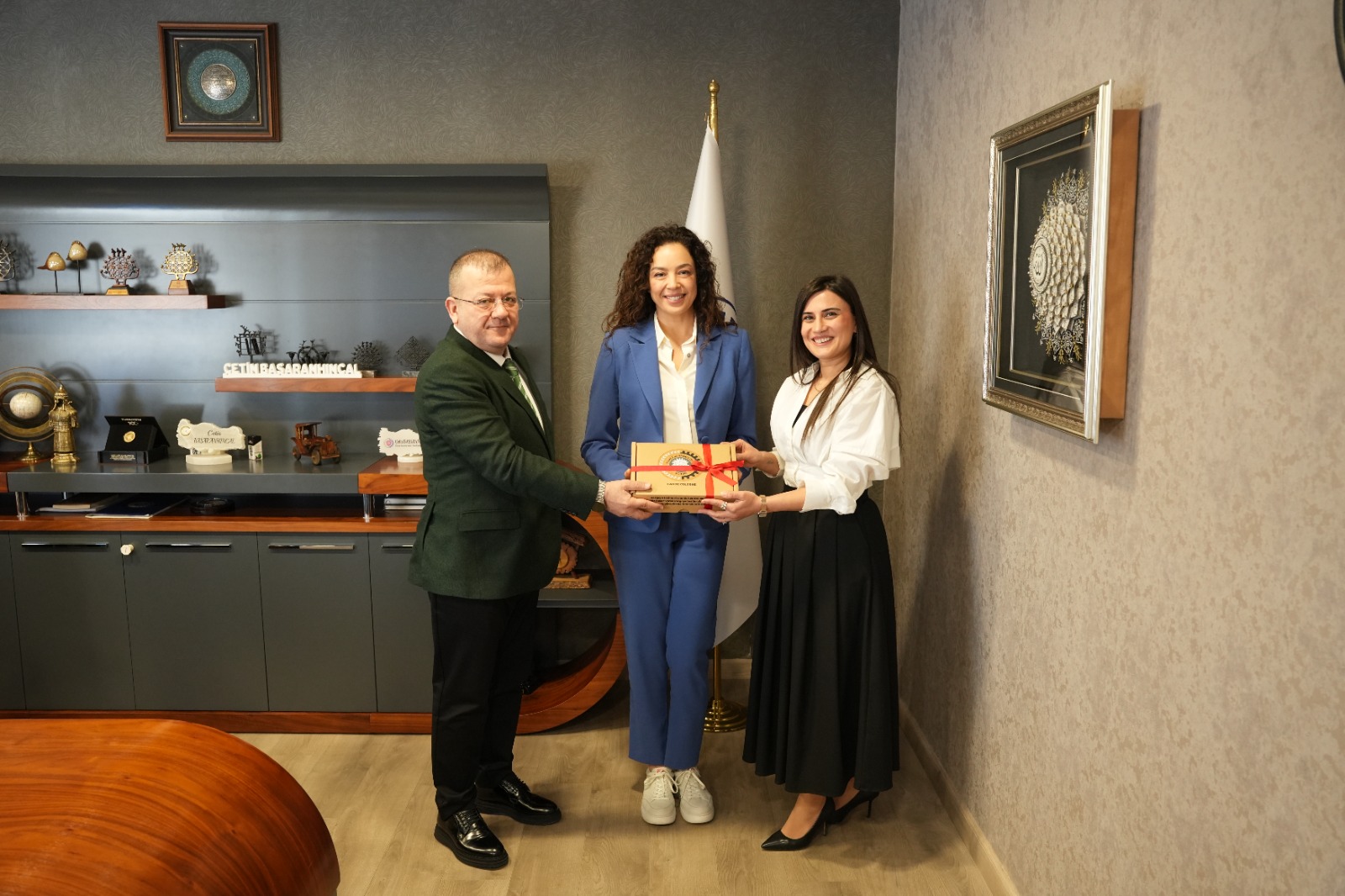 Odamıza Ziyaret - ( 05 Mart 2026) Odamız Kültür ve Konferans Salonu’nda, TOBB Çorum Kadın Girişimciler İcra Kurulu Başkanı Zeynep Yarımca’nın organizasyonuyla düzenlenen Halkbank Çocuk Tiyatrosu etkinliği kapsamında ilimize gelen Azra Akın, Yönetim Kurulu Başkanımız Çetin Başaranhıncal’ı ziyaret etti. Ziyarette TOBB Çorum Kadın Girişimciler İcra Kurulu Başkanı Zeynep Yarımca, Halkbank Çorum Bölge Müdürü Mükremin Gönül, Halkbank Kurumsal İletişim Daire Başkanı Tuna Alcı, Halkbank Bölüm Müdürü Şermin Keskin Uzun ve Azra Akın Prodüksiyon Operasyon Sorumlusu Onur Oral yer aldı. Yönetim Kurulu Başkanımız Çetin Başaranhıncal, ilimize gelerek gerçekleştirilen etkinliğe katkı sunan Azra Akın’a nazik ziyaretleri ve programa sağladıkları katkılar dolayısıyla teşekkür ederek, çocuklara yönelik kültürel ve sanatsal etkinliklerin önemine değinerek bu tür organizasyonların toplum için değerli olduğunu ifade etti. Yönetim Kurulu Başkanımız Çetin Başaranhıncal ve TOBB Çorum Kadın Girişimciler İcra Kurulu Başkanı Zeynep Yarımca ziyaretin anısına Azra Akın’a hediye takdim ettiler.