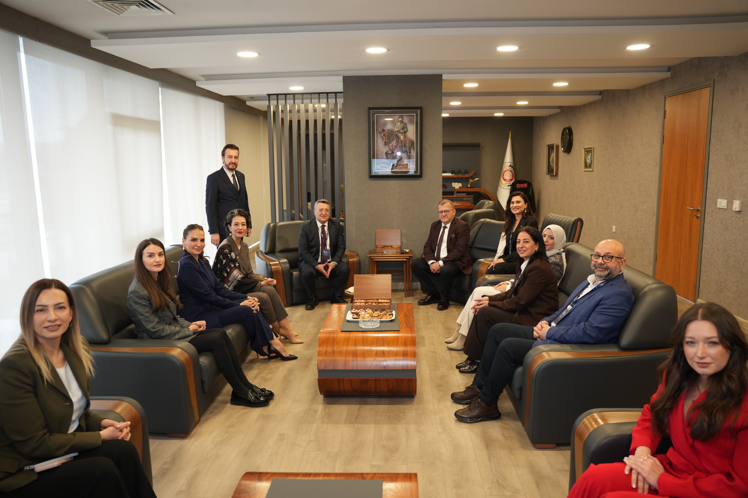 Halkbank Üreten Kadınlar Programı için şehrimize gelen Sunucu Ebru Akel, Konuşmacı Rüzgar Mira Okan, Konuşmacı Nuri Murat Avcı, Konuşmacı Gizem Aydoğmuş, Panelist Ticaret Bakanlığı Ticaret Uzmanı Rümeysa Okumuş, Panelist KOSGEB İşletme Destekleri Dairesi Başkanlığı KOBİ Uzmanı Merve Yener, Panelist Halkbank Girişimci Bankacılık Daire Başkanlığı Kadın Girişimci Bölüm Müdürü Yasemin Dayı, Halkbank Çorum Bölge Müdürü Mükremin Gönül, Halkbank Kurumsal İletişim Daire Başkanı Tuna Alcı ve Halkbank Girişimci Bankacılık Daire Başkanı Didem Dilara Alp, Yönetim Kurulu Başkanımız Çetin Başaranhıncal’ı ziyaret ettiler. Ziyarette Yönetim Kurulu Üyelerimiz Doğan Keskin ile Nilüfer Akın ve TOBB Çorum KGK Başkanı Zeynep Çenesiz Yarımca da hazır bulundu. Misafirlerimize nazik ziyaretlerinden dolayı teşekkür ederiz.