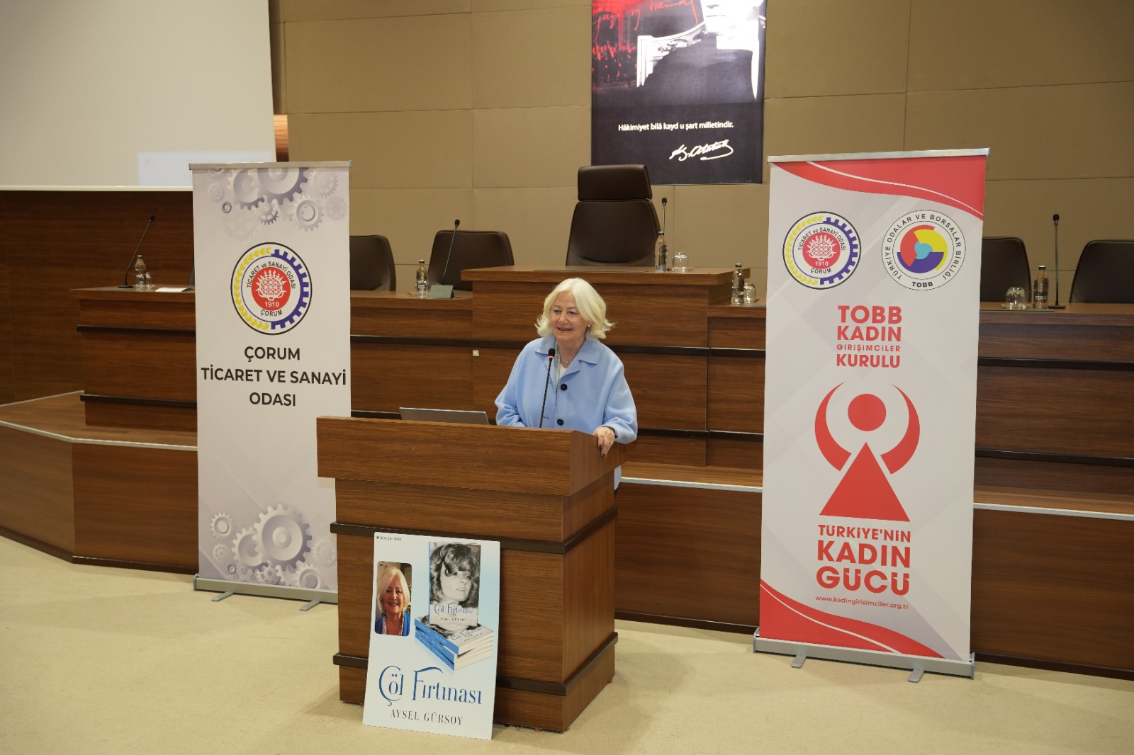 "ÇÖL FIRTINASI" SÖYLEŞİSİ - ( 15 Nisan 2026) Odamız ve TOBB Çorum Kadın Girişimciler Kurulu iş birliği ile Yazar Aysel Gürsoy’un kaleminden çıkan ve Girişimci & Hititolog Ayten Çöl’ün yaşam hikayesini konu alan “Çöl Fırtınası” adlı eser üzerine kapsamlı ve ilham verici bir söyleşi yapıldı. Programda, eserin ortaya çıkış süreci, Ayten Çöl’ün yaşam öyküsü, girişimcilik deneyimleri, iş hayatına dair önemli paylaşımlar ve girişimcilik yolculuğu farklı yönleriyle ele alındı. Söyleşinin ardından gerçekleştirilen soru-cevap bölümünde katılımcıların soruları yanıtlandı ve interaktif bir ortam sağlandı. Etkinlik sonunda yazar Aysel Gürsoy tarafından kitap imza programı gerçekleştirildi. İmza töreninin ardından söyleşi sona erdi.