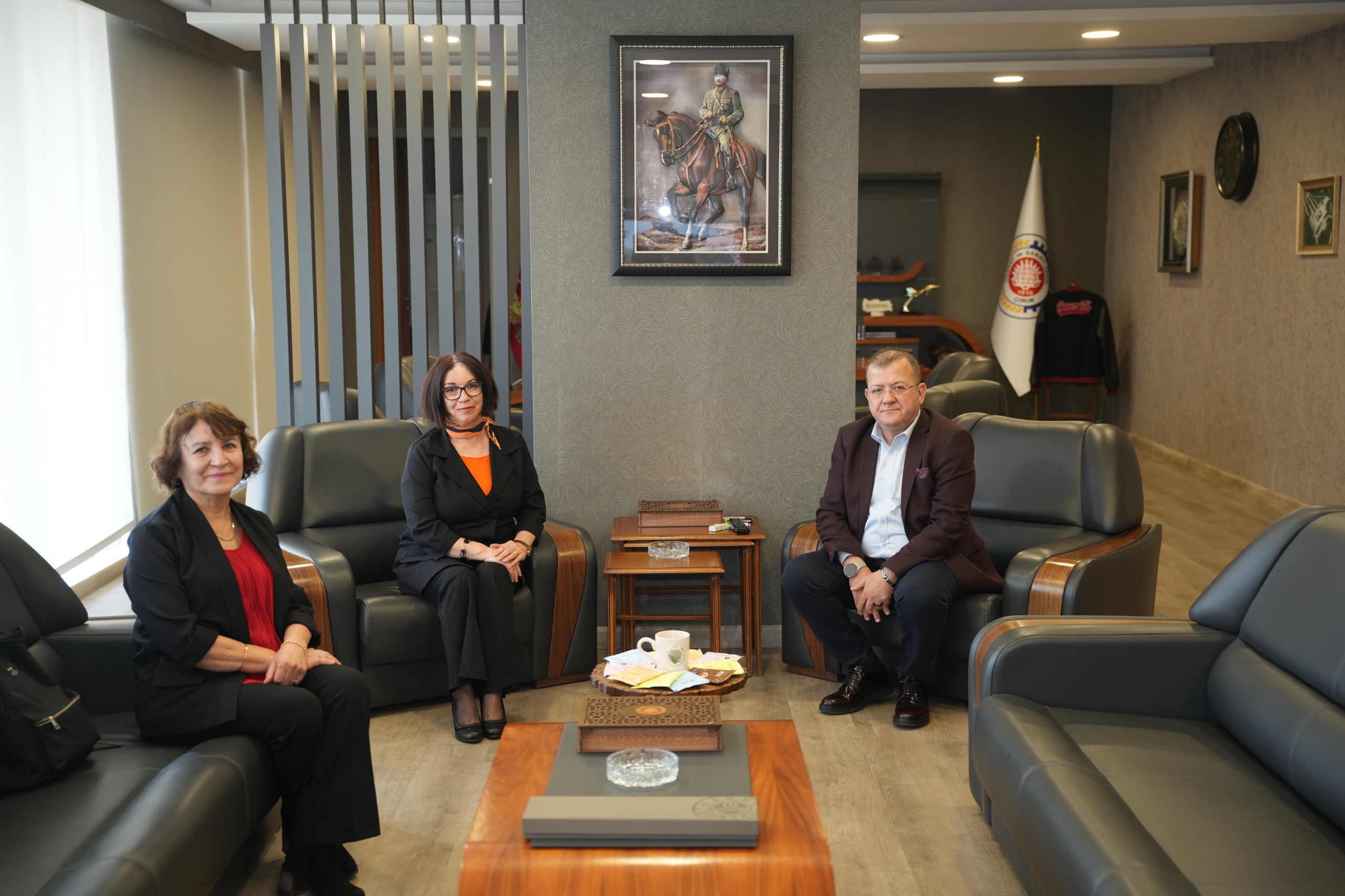 Çorum Haber Gazetesi Köşe Yazarı ve Çorum Edebi Kadınlar Kitap Okuma Kulübü Moderatörü Zeynep Özçerezci ve Kulüp Üyesi Derya Bütünoğlu, Yönetim Kurulu Başkanımız Çetin Başaranhıncal’ı ziyaret ettiler. Ziyarette Zeynep Özçerezci ve Derya Bütünoğlu, Yönetim Kurulu Başkanımız Çetin Başaranhıncal’a kitap hediye ettiler. Misafirlerimize nazik ziyaretlerinden ve hediyelerinden dolayı teşekkür ederiz.