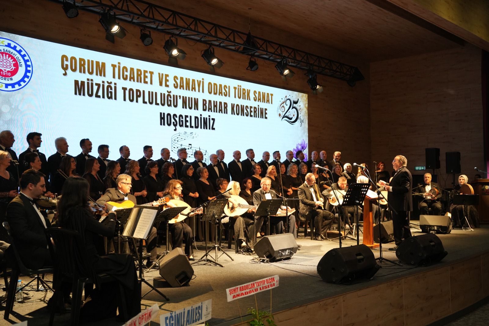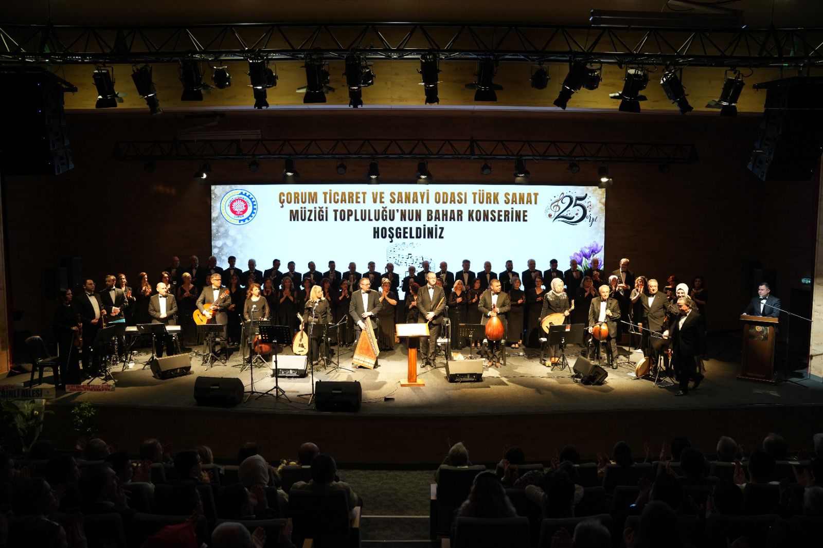 Çorum Ticaret ve Sanayi Odası’nın önemli kültürel temsil unsurlarından biri olan Türk Sanat Müziği Korosu, 25 yıllık süreçte gerçekleştirdiği sayısız konser ve etkinlikle hem kurumun sosyal sorumluluk anlayışına hem de şehrin kültürel zenginliğine katkı sağladı. Gerçekleştirilen 25. yıl konseri de bu köklü birikimin ve emeğin sahneye yansıması oldu.